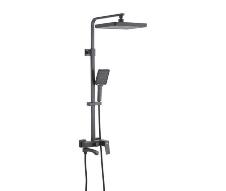 В комплекте входит верхний душ, шланг, лейка, штанга с держателем для душевой лейки и смеситель.