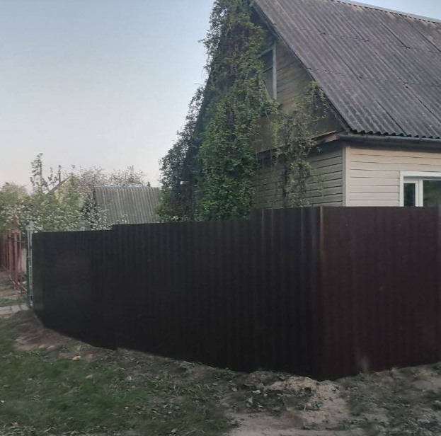 Лучшее решение для дачи: забор из профлиста — полная приватность, защита от пыли и долговечность.