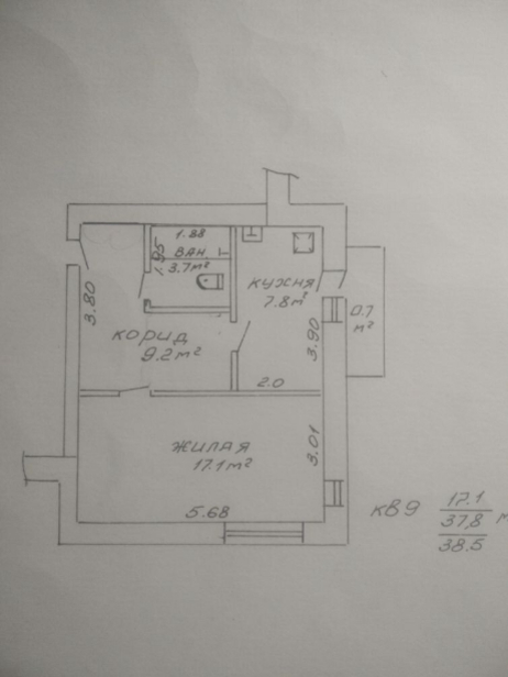 жилая площадь 17.1м.2, общая площадь-37.8кв.м, кухня 7.8 кв.м, имеется балкон, квартира расположена на 3 этаже 4х этажного кирпичного дома. Окна и балконный блок заменены на стеклопакеты.Год постройки дома 1994 года.Удобное место расположение дома-рядом находится остановка и магазины, аптека. Обмен с доплатой на 2х комнатную квартиру в Большевике.