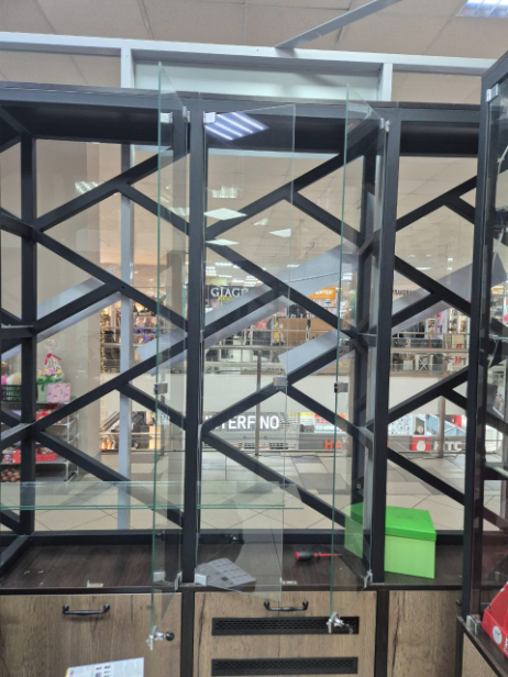Комплект торгового оборудования для павильона. В наличии: стеллажи, стеклянные закрытые витрины. Задние стенки сделаны из прочного металла. Состояние хорошее, готово к использованию.