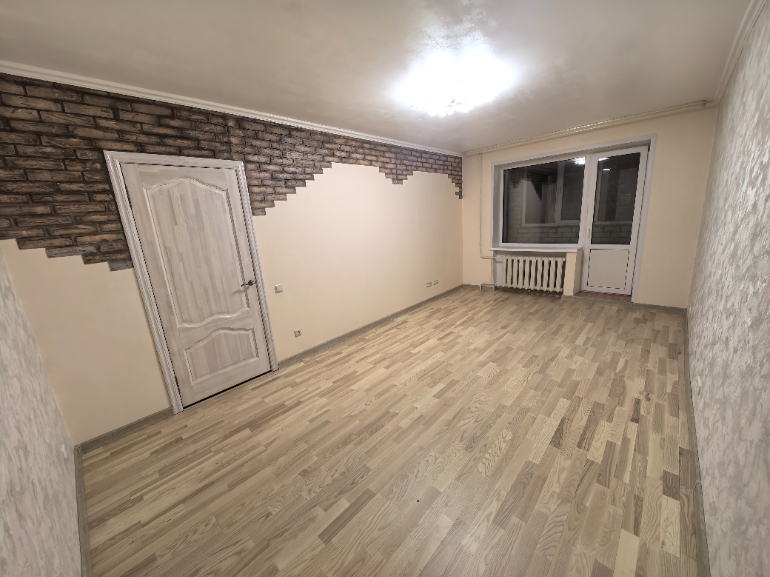 Обменяем большую малосемейку с ремонтом на двухкомнатную в советском районе с доплатой. Недавно сделан ремонт во всей квартире. На полу в комнате паркет, новая кухня. В прихожей встроенный вместительный шкаф-купе.