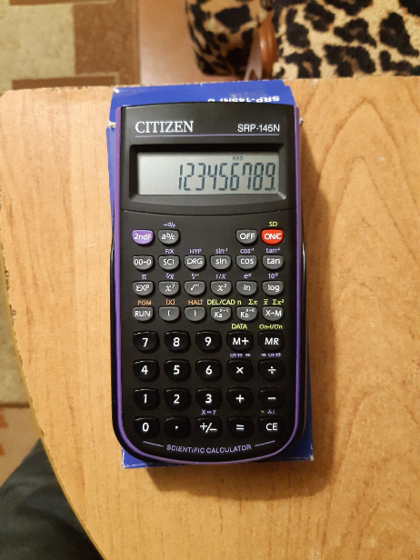 Продаю инженерный калькулятор Citizen SRP 145 NPU. Б/у, в хорошем состоянии. Предназначен для проведения как простых, так и сложных вычислений. Батарейка была заменена на новую. Полный комплект: калькулятор, защитная крышка, коробка, паспорт, инструкция. Идеально подойдет студентам, строителям, инженерно-техническим работникам. Могу выслать почтой в пределах Республики Беларусь.